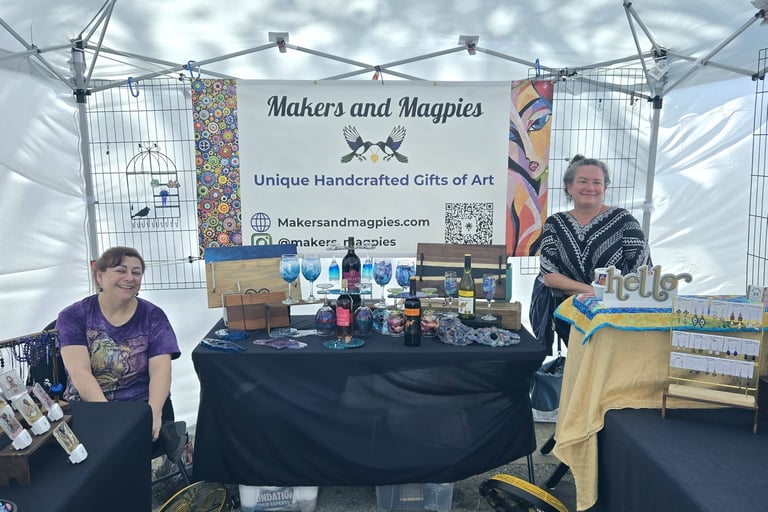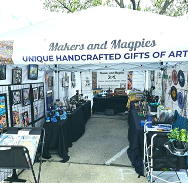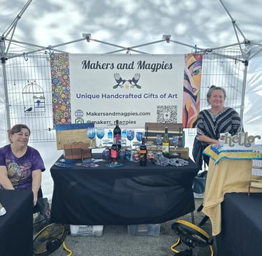 Patricia Drenten (Dianne's mom) and Julie Ramezani (left) became fast friends once Pat started spending her summers in a tiny trailer on a farm near Rugby, U.K. They spent most days together - playing cards and primarily enjoying their time as makers. Pat shared her passion for creating beaded jewelry with Julie, and the game was on! Pat continued to summer in England as long as she could, and Julie visited the U.S. many times to see her "Patty" and to exchange more treasures they each had created. Pat left us in June, 2025, and we honor both of these wonderful artists by combining their pieces in a single collection, regardless of which of them crafted each one.