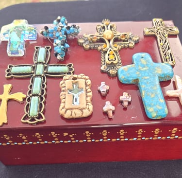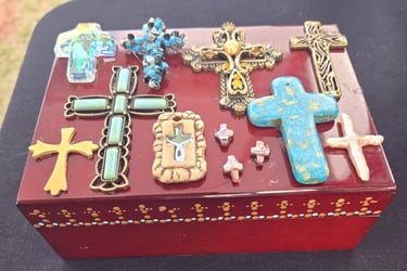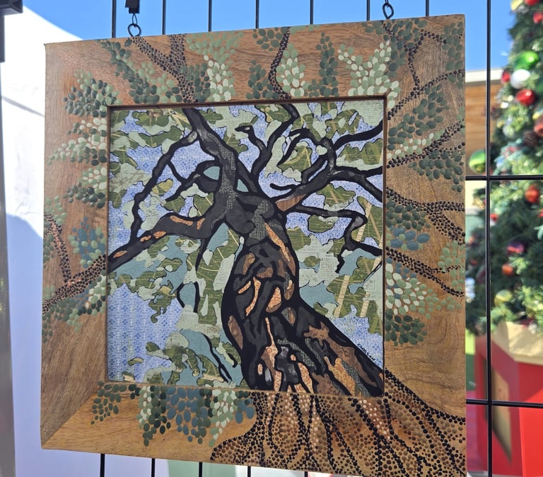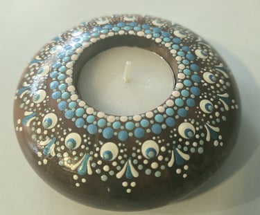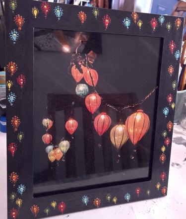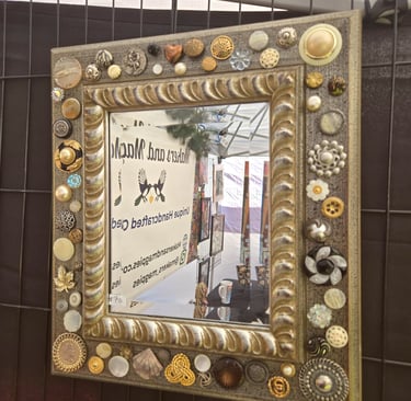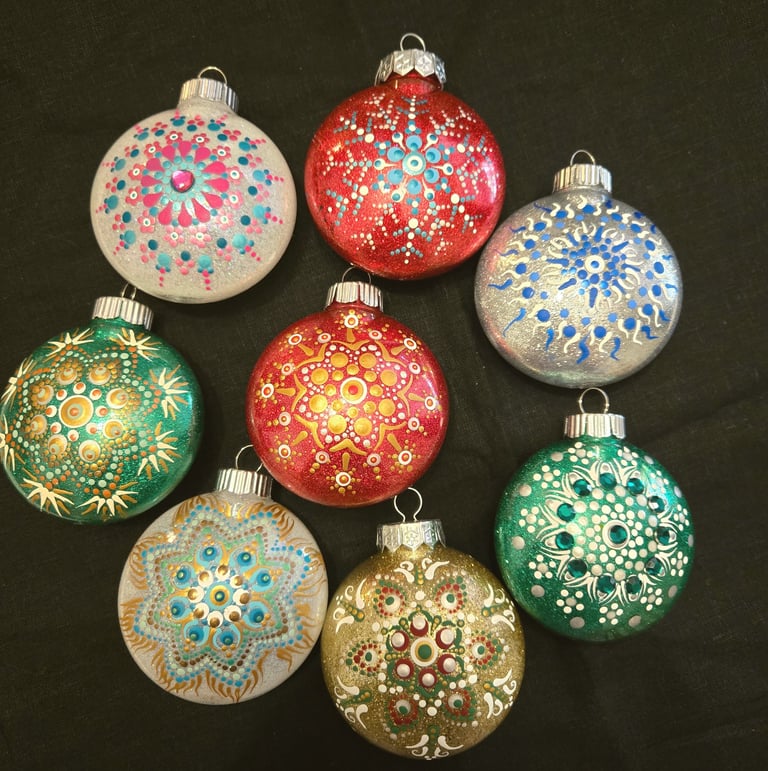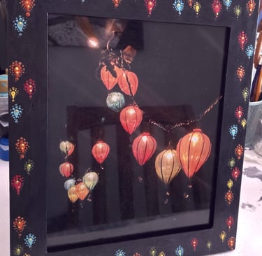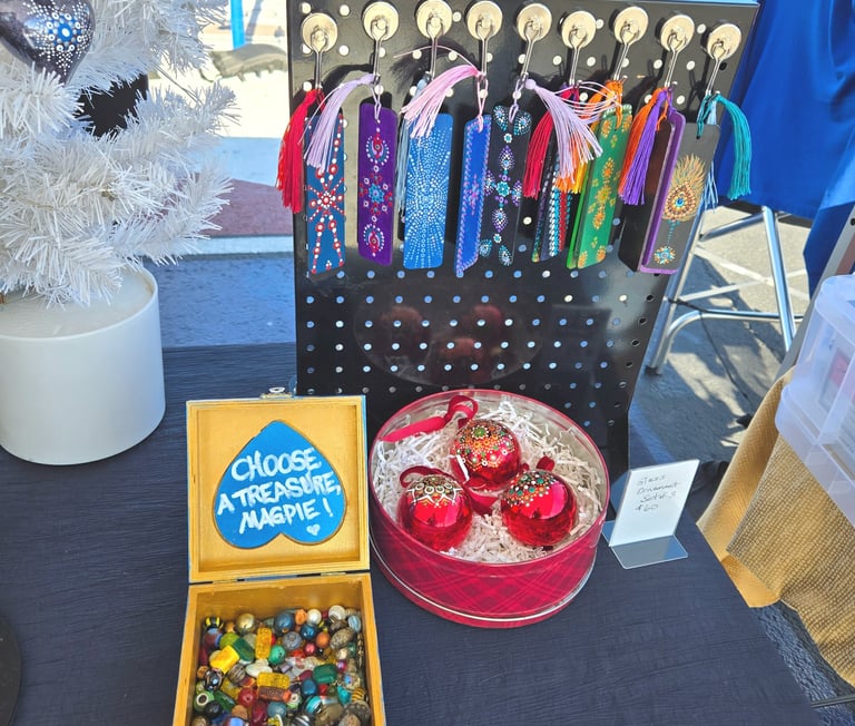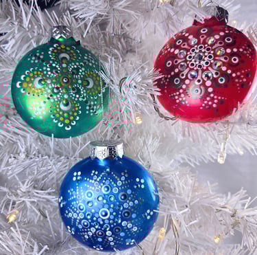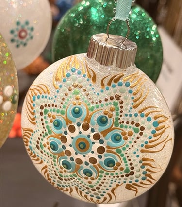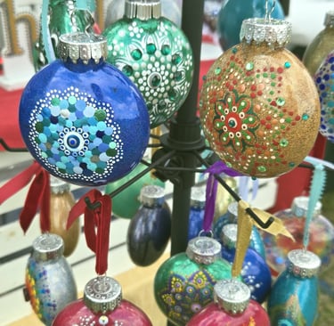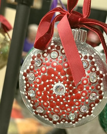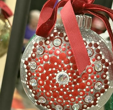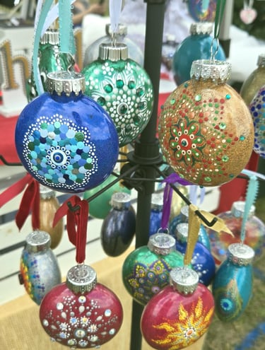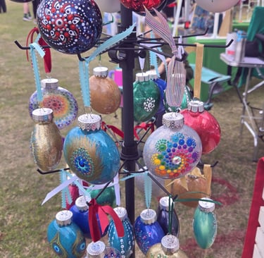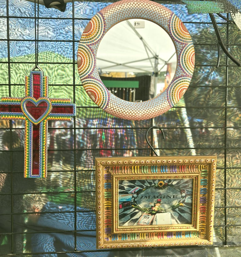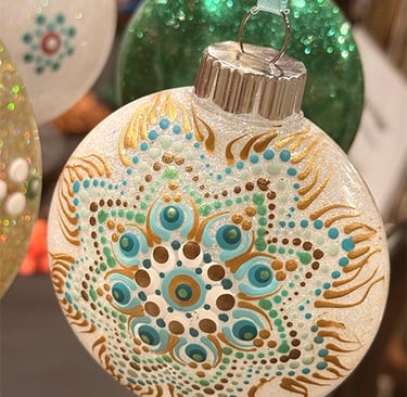 Welcome to my eclectic collection of dot-painted and assemblage decor! The pics below are unique pieces I have created over the past several years, and not all are still available for sale. For now, I will be selling available works in-person at local craft fairs, yet I'm happy to take custom orders for particular types of decor, like ornaments, wedding favors/gifts, art frames - or to beautify a piece you already own. Please fill out the contact form below for a free consultation.