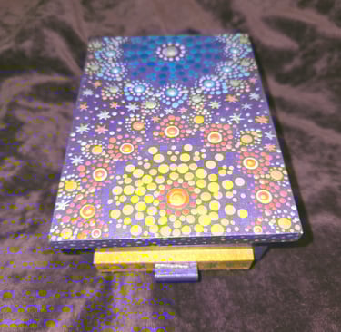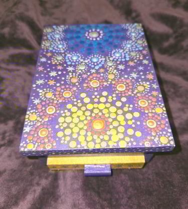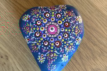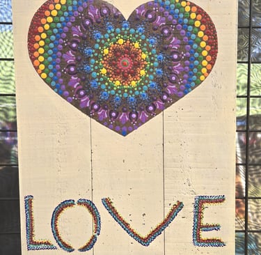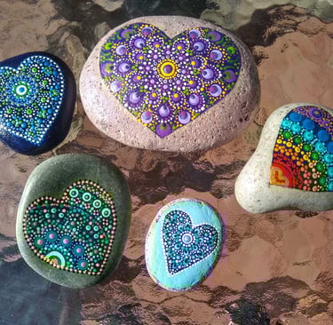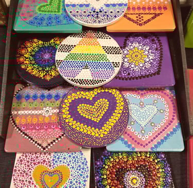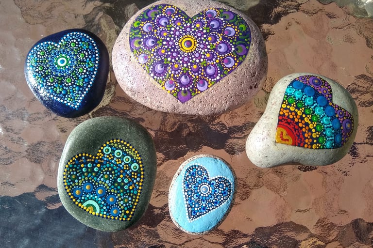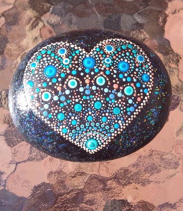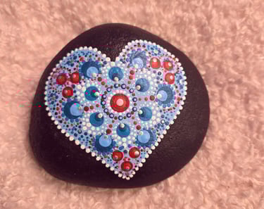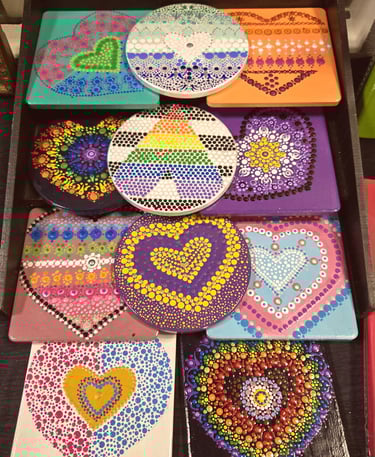 Where my love affair with dot painting began in 2021. After pandemic holiday separations and Valentine's Day approaching, I wanted my loved ones to know how much they were missed. I watched a few videos on dotting for beginners, and it didn't take long to get the hang of it and really notice the added benefits of calming my busy mind and anxiety-prone nervous system. I highly recommend trying it for yourself!