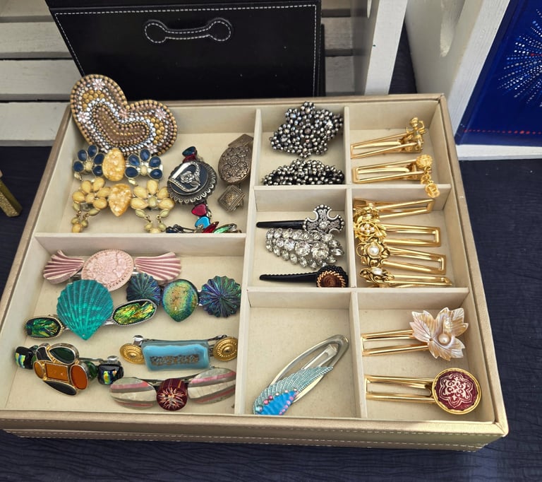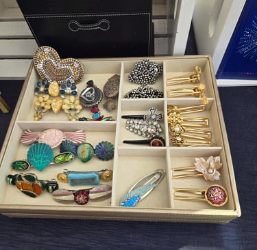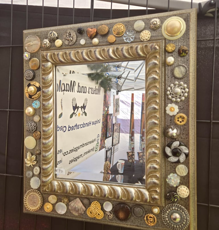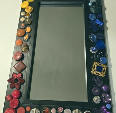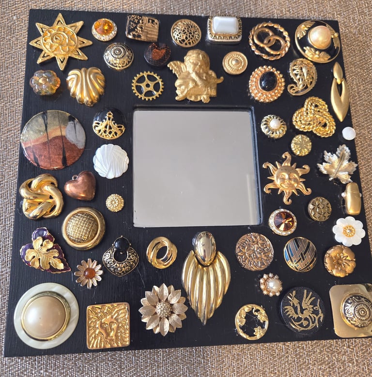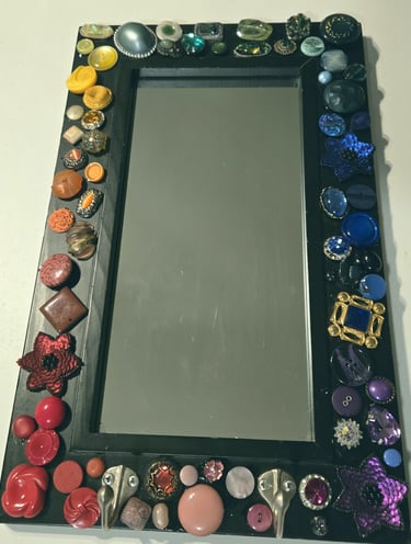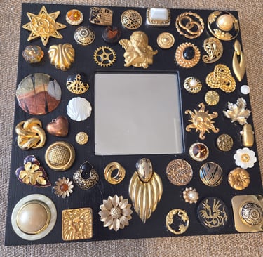 Unlike 2D paper collage, assemblage art is a 3-dimensional form where everyday objects are combined to form something new. I have recently just started creating pieces from my mother's collection of vintage earrings, buttons, and various baubles.