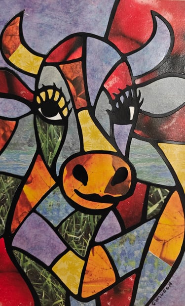 Hello! I'm excited to debut my works of intricately cut paper art. I always say that collecting scrapbooking paper (and cork, and burlap, and other things) and making art with them are two separate hobbies! Some of my pieces look like paper mosaics, others more like stained glass. I am inspired by the curvy lines I find in nature and the human body. I love to create custom portraits of pets and people, so please see the bottom section for more info on how to contact me for a free consultation. More information on dimensions, sizes, and prices coming soon. For now you can email me at christiwilsonart@gmail.com and let me know what you'd like, and I can get it to you!